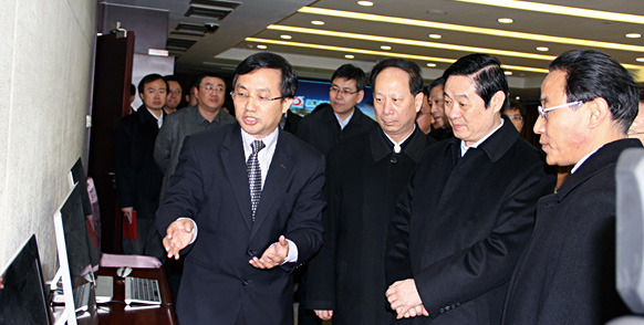 時(shí)任中央政治局委員、中央書記處書記,中宣部部長(zhǎng)劉奇葆在江蘇省委領(lǐng)導(dǎo)陪同下考察鳳凰創(chuàng)壹開(kāi)發(fā)的VR仿真教學(xué)培訓(xùn)系統(tǒng)
