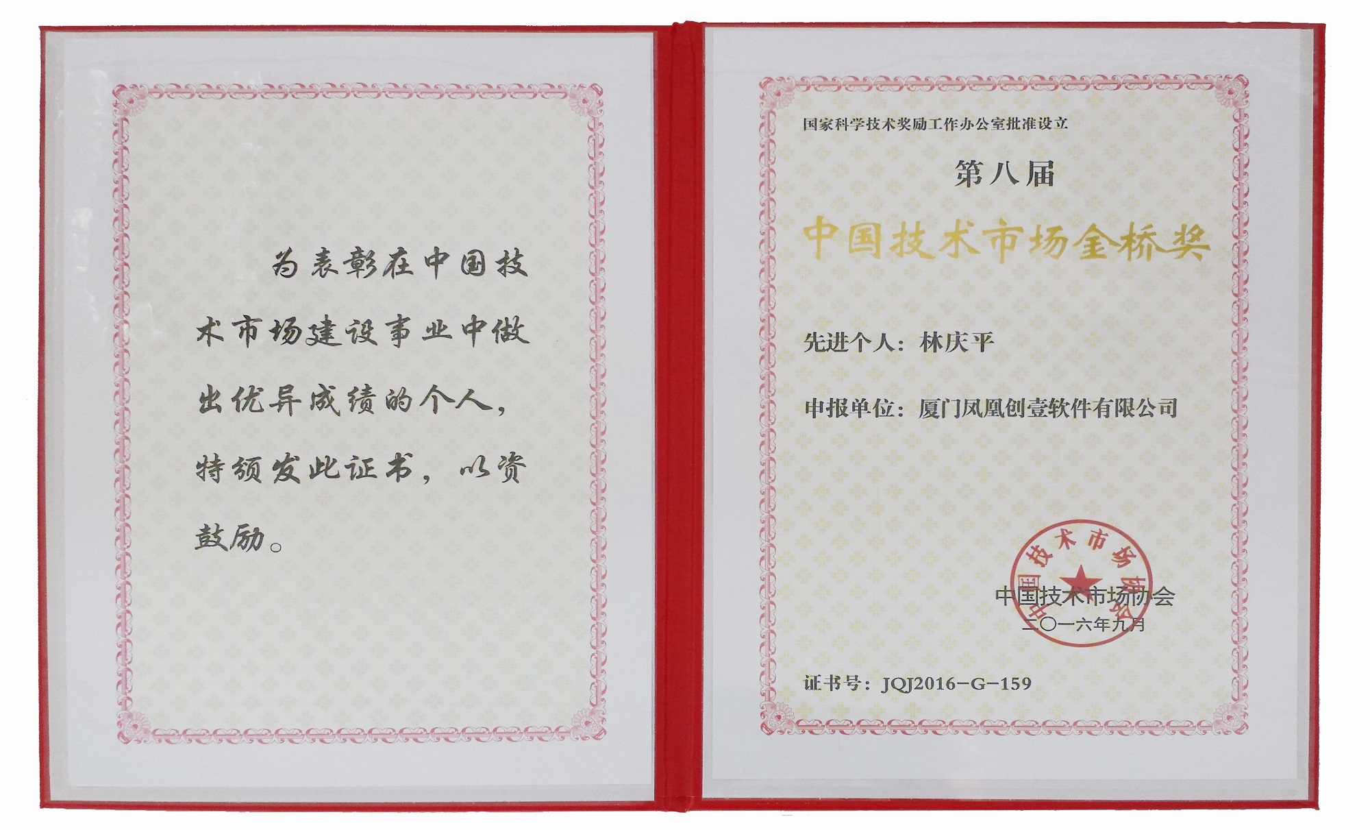 日前,中國技術(shù)市場協(xié)會公布了“第八屆中國技術(shù)市場金橋獎”獲獎名單,本司(廈門鳳凰創(chuàng)壹軟件有限公司m.54631.net)總經(jīng)理兼技術(shù)總監(jiān)林慶平博士榮膺“第八屆中國技術(shù)市場金橋獎金橋獎......