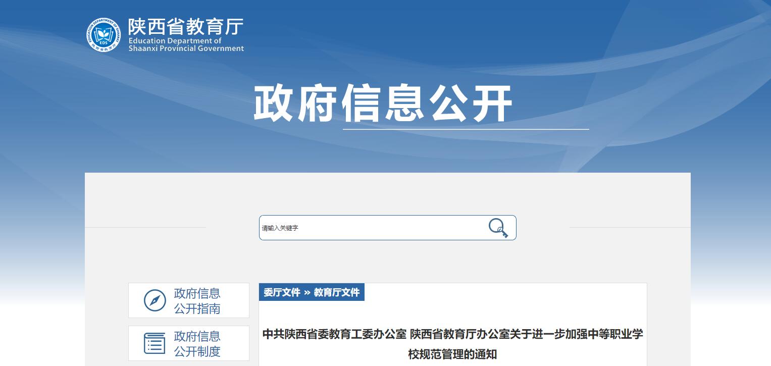 陜西省教育廳發(fā)布《關(guān)于進(jìn)一步加強中等職業(yè)學(xué)校規(guī)范管理的通知》