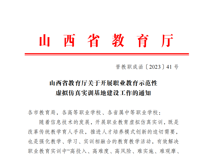 山西省教育廳發(fā)布關(guān)于開展職業(yè)教育示范性虛擬仿真實訓(xùn)基地建設(shè)工作的通知