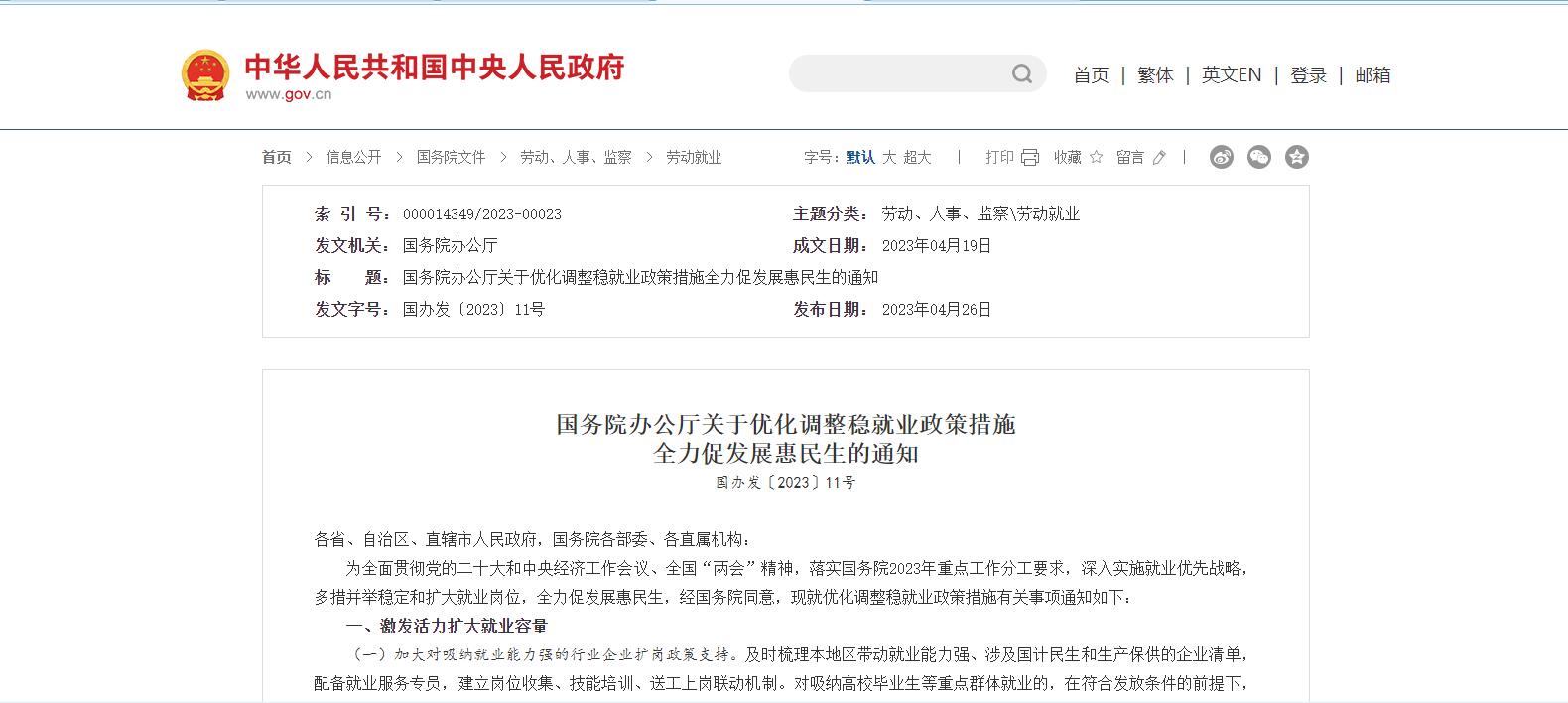 國務(wù)院辦公廳發(fā)布優(yōu)化調(diào)整穩(wěn)就業(yè)政策措施全力促發(fā)展惠民生的通知