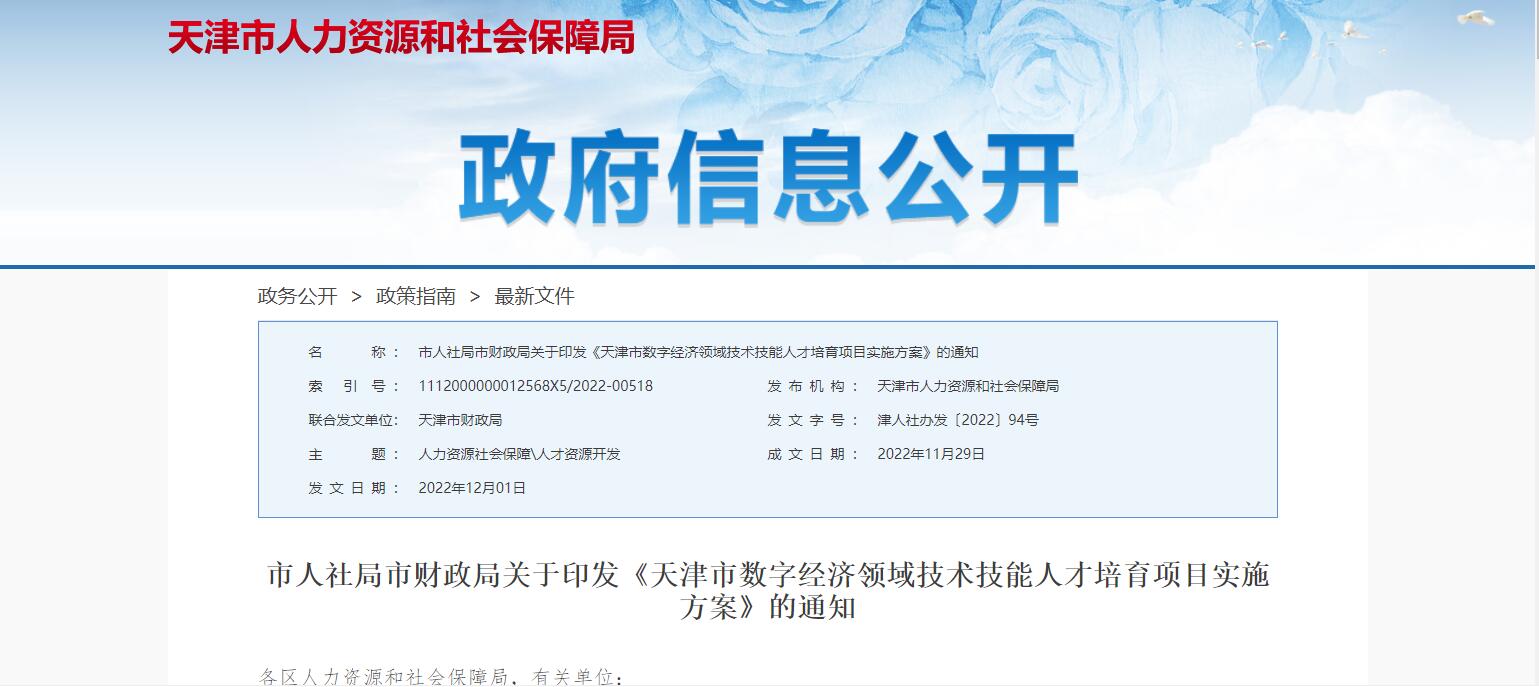 天津出臺數(shù)字人才培育落地政策 將在2030年末培育數(shù)字經(jīng)濟技術(shù)技能人才1萬人以上