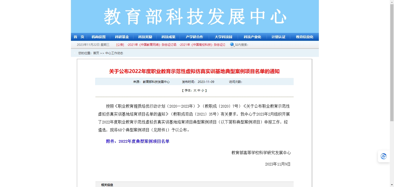 2022年度職業(yè)教育示范性虛擬仿真實訓(xùn)基地典型案例項目名單公布