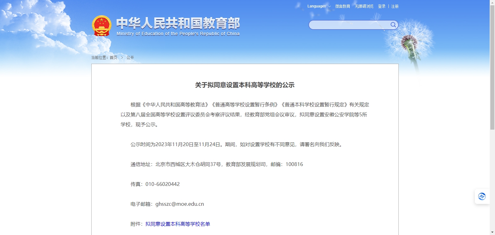 教育部發(fā)布《關(guān)于擬同意設(shè)置本科高等學(xué)校的公示》。公示指出,根據(jù)《中華人民共和國高等教育法》《普通高等學(xué)校設(shè)置暫行條例》《普通本科學(xué)校設(shè)置暫行規(guī)定》有關(guān)規(guī)定以及第八屆全國高等學(xué)校設(shè)置評議委員會考察評議結(jié)......